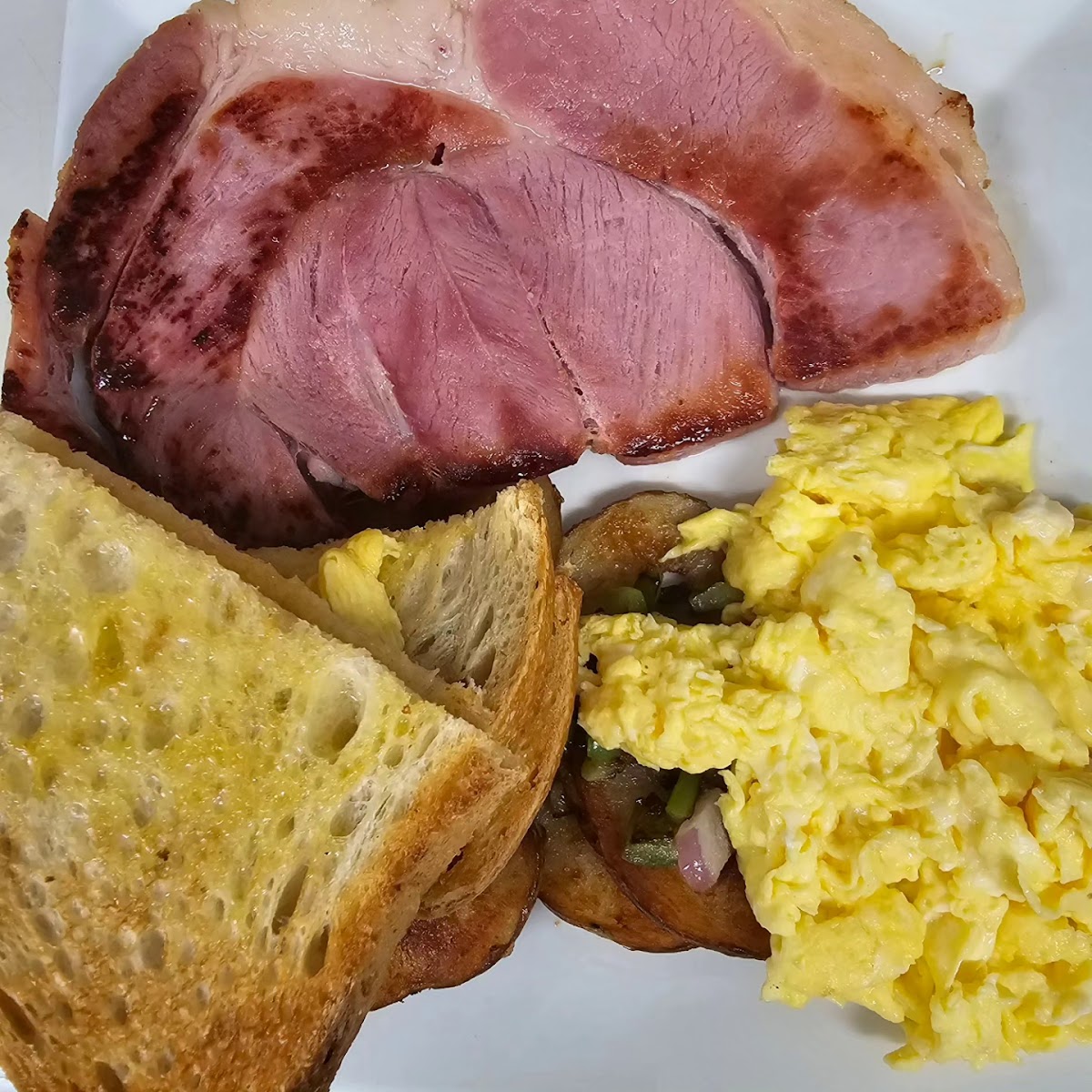 “ Clean and cute little restaurant. Ordered a ham and cheese omelet. Subbed toast for two small waffles. Nice of them to do this. Cheese was sparse. Ham was tasty but sparse as well. As a result left 1/2 of the egg Partner ordered a skillet. Subbed 1/2 order of biscuits and gravy (from a package) for toast. Didn’t know this would be an up charge. Owner very politely apologized and adjusted the ticket. Outstanding customer service! Cleanliness and customer service would entice me back to try something else. ”